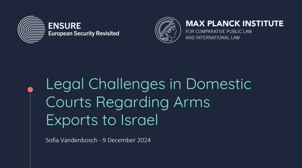 Sofia Vandenbosch talks about „Legal Challenges in Domestic Courts Regarding Arms Exports to Israel“ at the MPIL Monday Meeting.