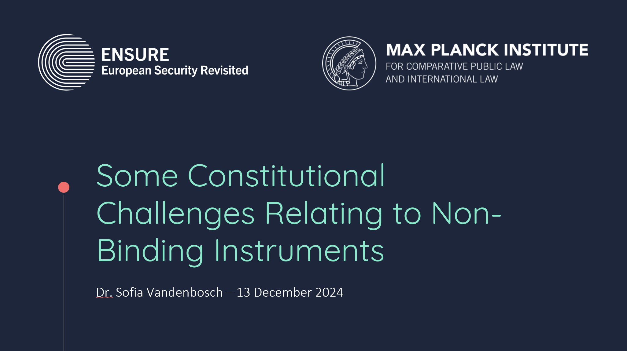 Sofia Vandenbosch shares her expertise with a talk on „Some Constitutional Challenges Relating to Non-Binding Agreements. Current developments in international and EU external relations Law“ at a meeting between the European Commission and the Max Planck Institute for Comparative Public Law and International Law, Heidelberg.