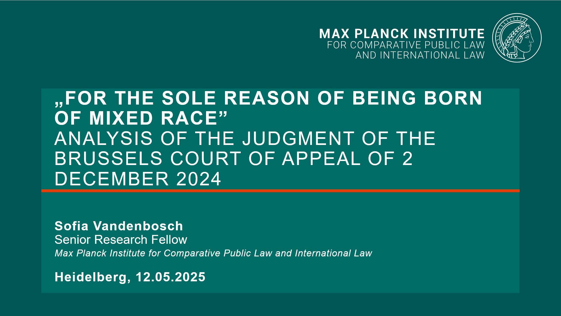 Sofia Vandenbosch contributes to the MPIL Monday Meeting with a presentation entitled „For the sole reason of being born mixed-race“. Analysis of the Judgment of the Brussels Court of Appeal of 2 December 2024″.