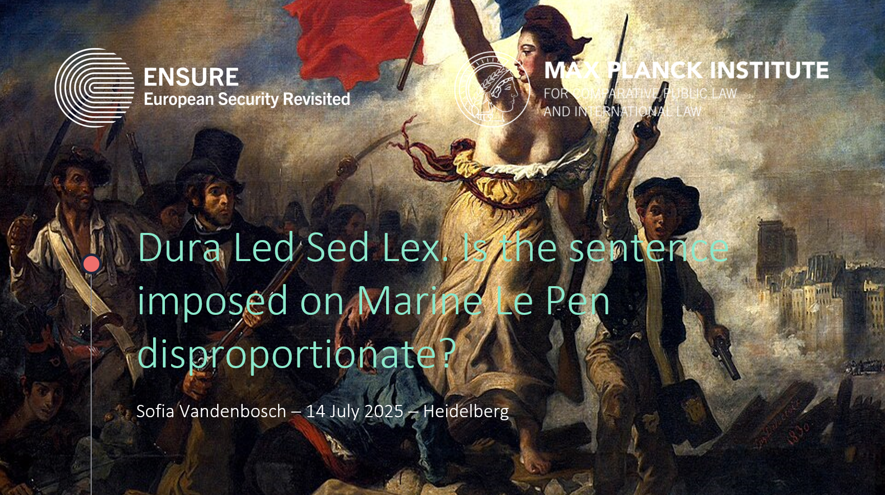Sofia Vandenbosch delivers a talk entitled „Dura lex sed lex. Is the sentence imposed on Marine Le Pen disproportionate?“ at the MPIL Monday Meeting.