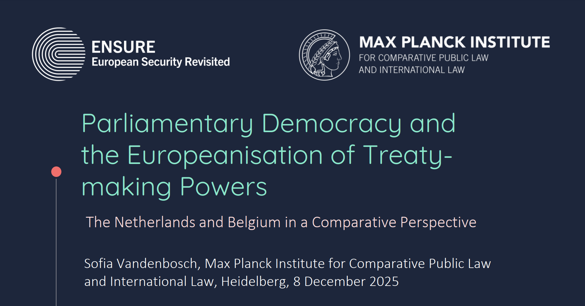 Sofia Vandenbosch presents her book with a presentation entitled „Parliamentary Democracy and the Europeanisation of Treaty-Making Powers: Belgium and the Netherlands in Comparative Perspective“ at the MPIL Monday meeting.
