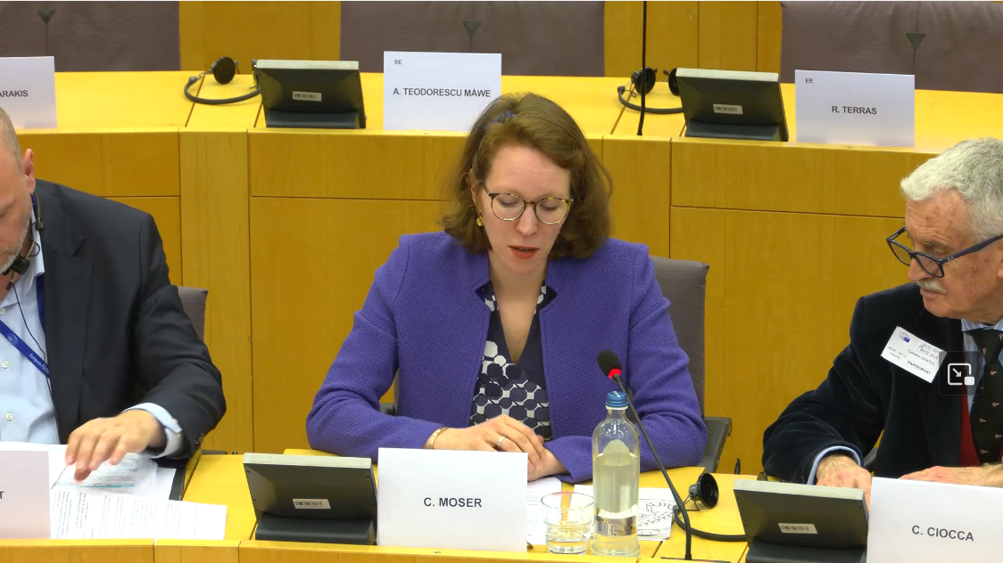 Carolyn Moser inputs her expertise as a pannelist in the SEDE AFCO Public Hearing on the Institutional Aspects of the Common European Defence Union, taking place at the European Parliament in Brussels (live transmission).
